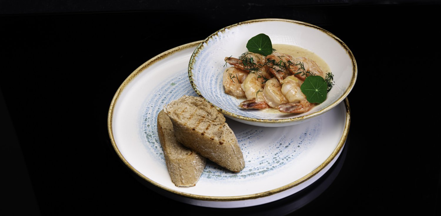 Onion, garlic, white wine, spinach, cherry tomatoes, butter, parsley, croutons