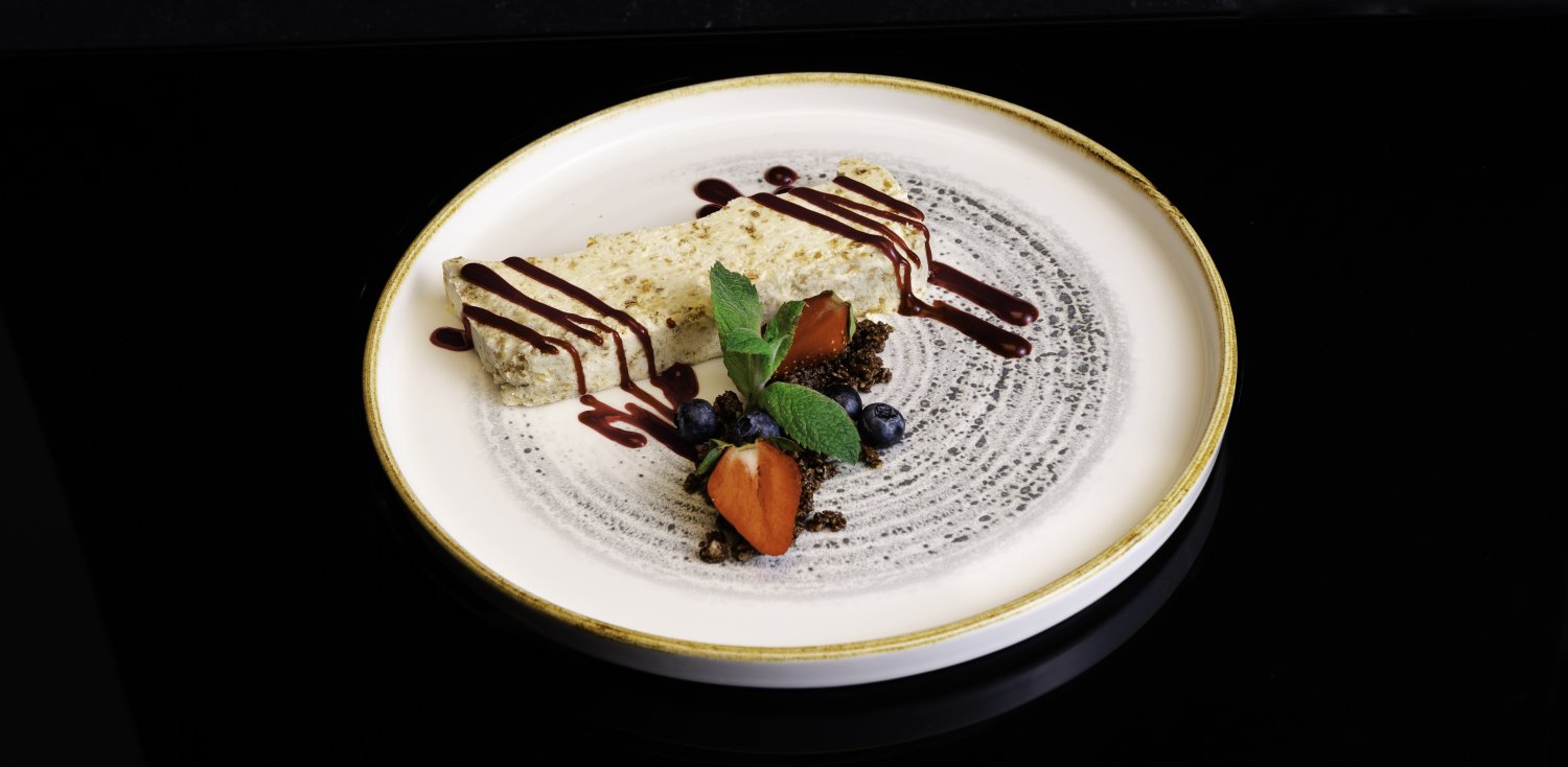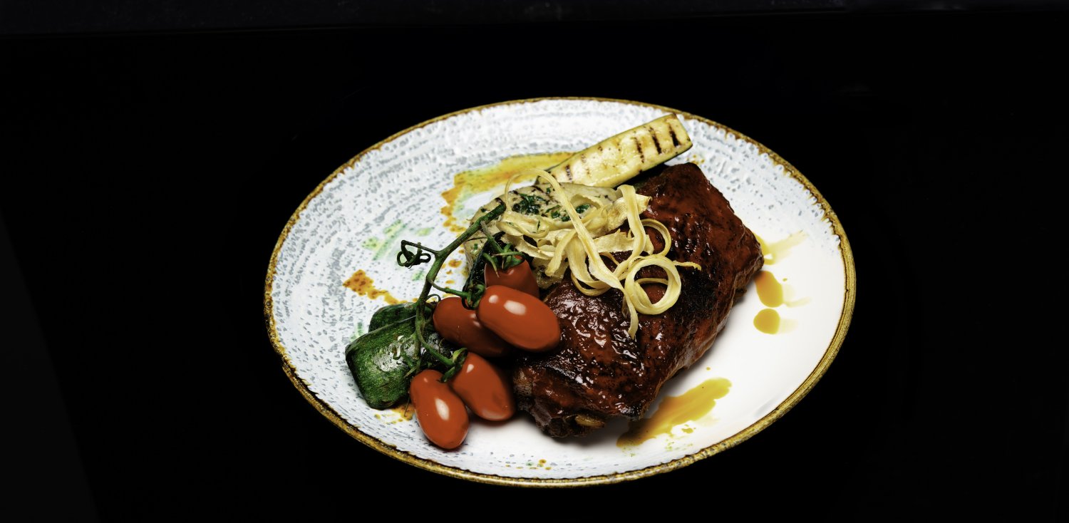 Celery gratin, pumpkin puree, roasted carrots, red wine sauce