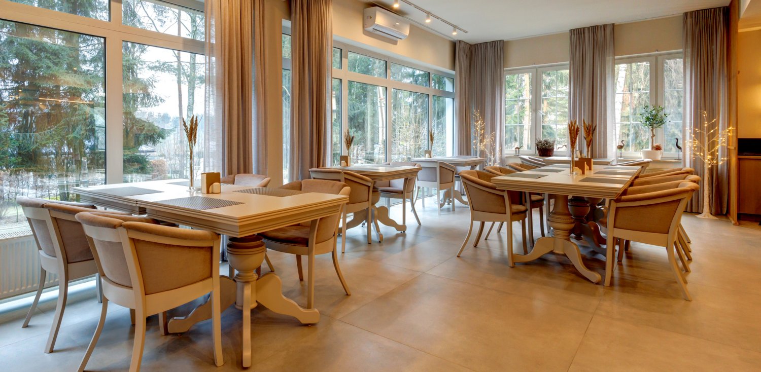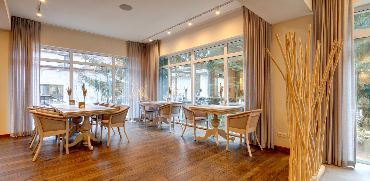 Menu naszej restauracji to autorskie kompozycje Szefa Kuchni, oparte na znakomitych, świeżych, często lokalnych i sezonowych produktach, przyprawione ziołami z hotelowego ogrodu. Specjalnością naszej restauracji są dania rybne i na bazie owoców morza oraz potrawy stworzone z wykorzystaniem darów pobliskich lasów.